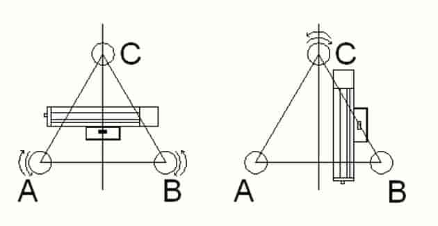 - Putarlah sekrup A, B masuk atau keluar secara bersama-sama, hingga gelembung nivo bergeser ke tengah.