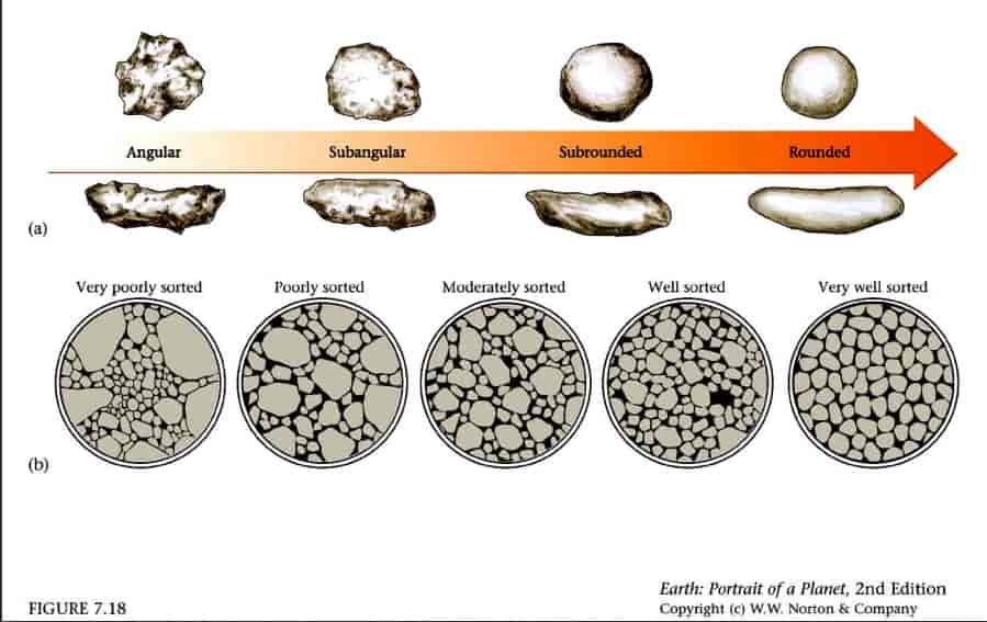 A.Menyudut (angular). B.Menyudut tanggung (subangular) C.Membulat tanggung (subrounded) D.Membulat (rounded) E.Membulat baik (wellrounded).